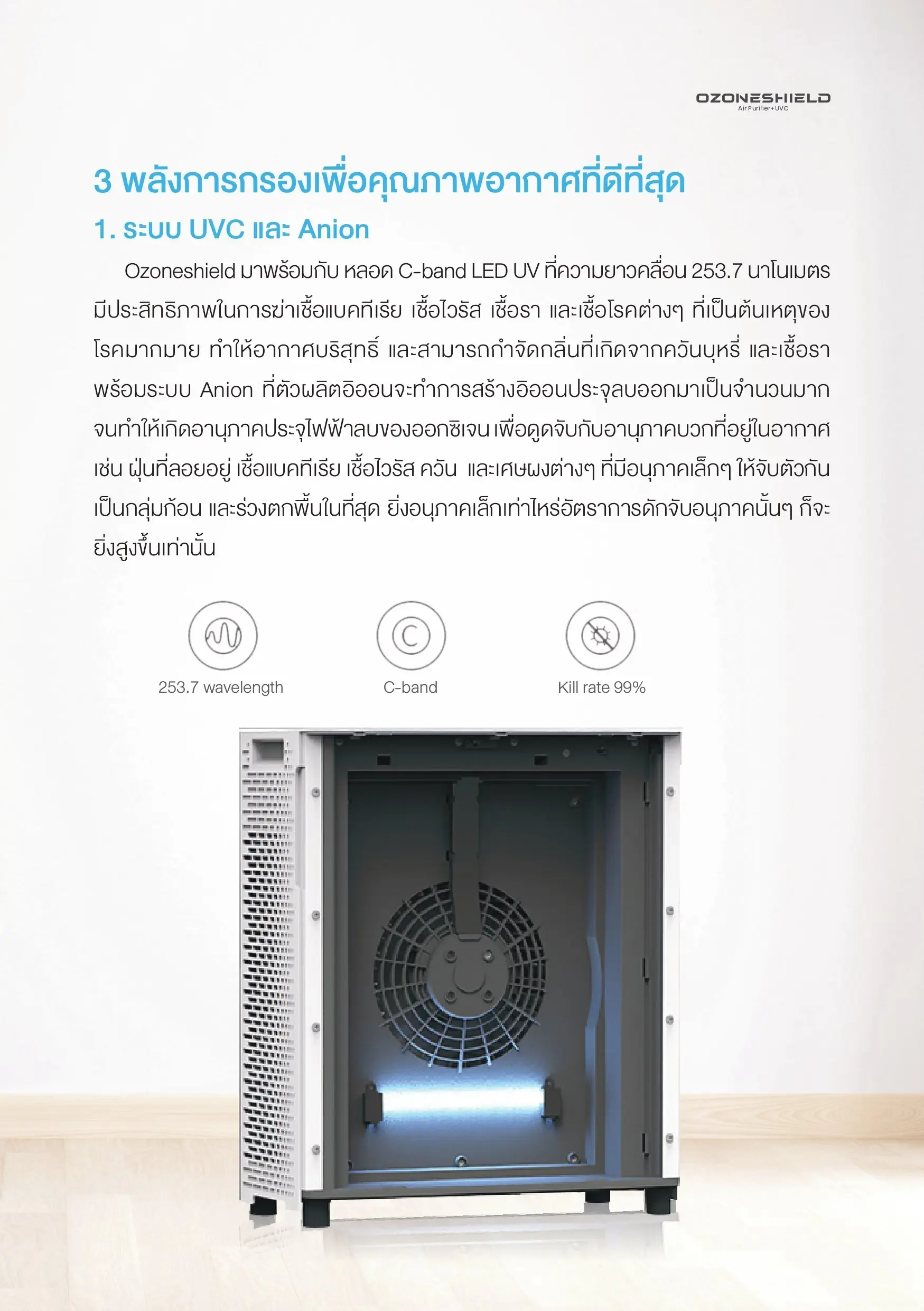Air Purifier OZONESHIELD is superior with 3 filtration powers for the best air quality.