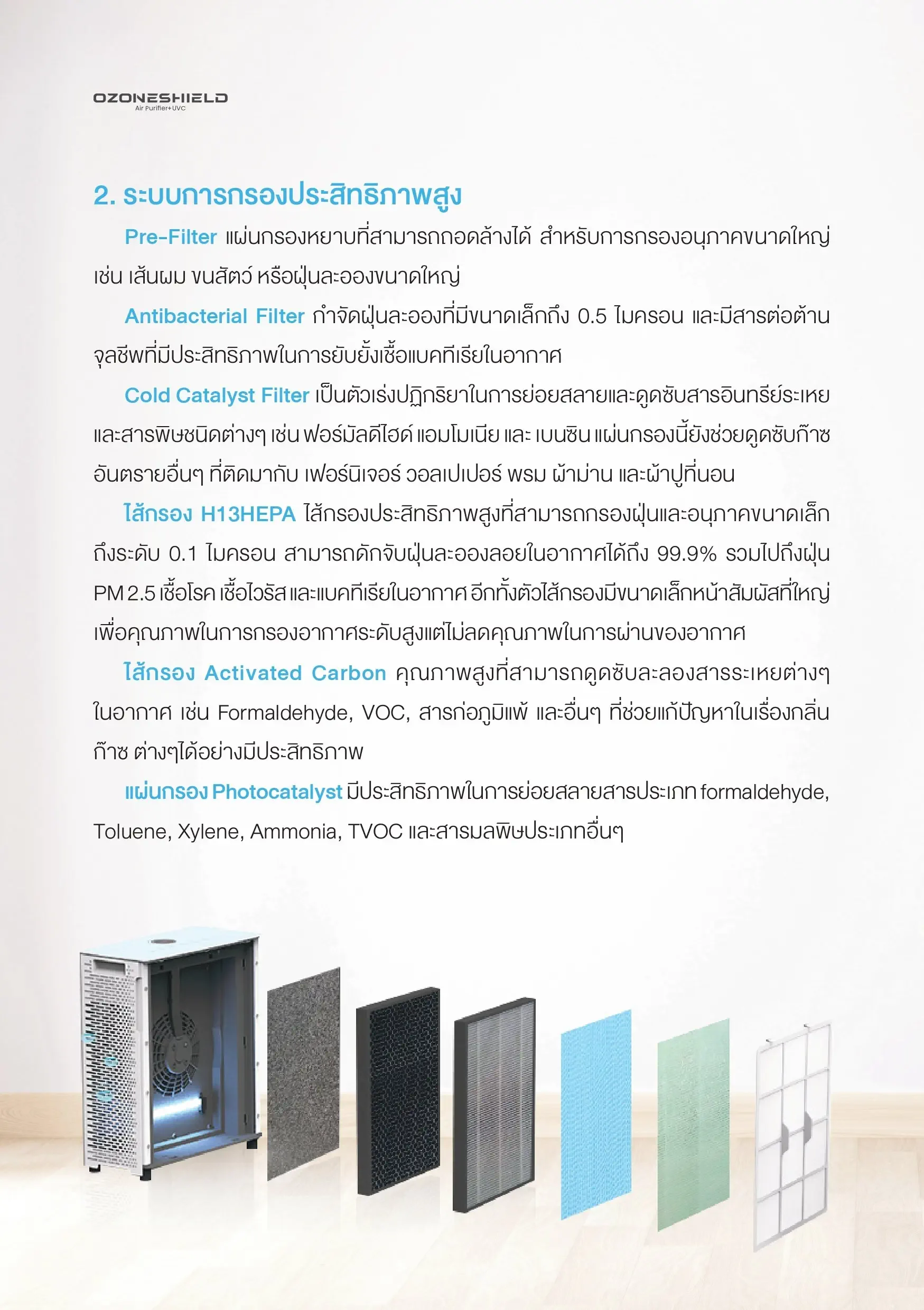 * Photocatalyst Filter * Effective in decomposing substances formaldehyde, Toluene, Xylene, Ammonia, TVOC and other types of pollutants.