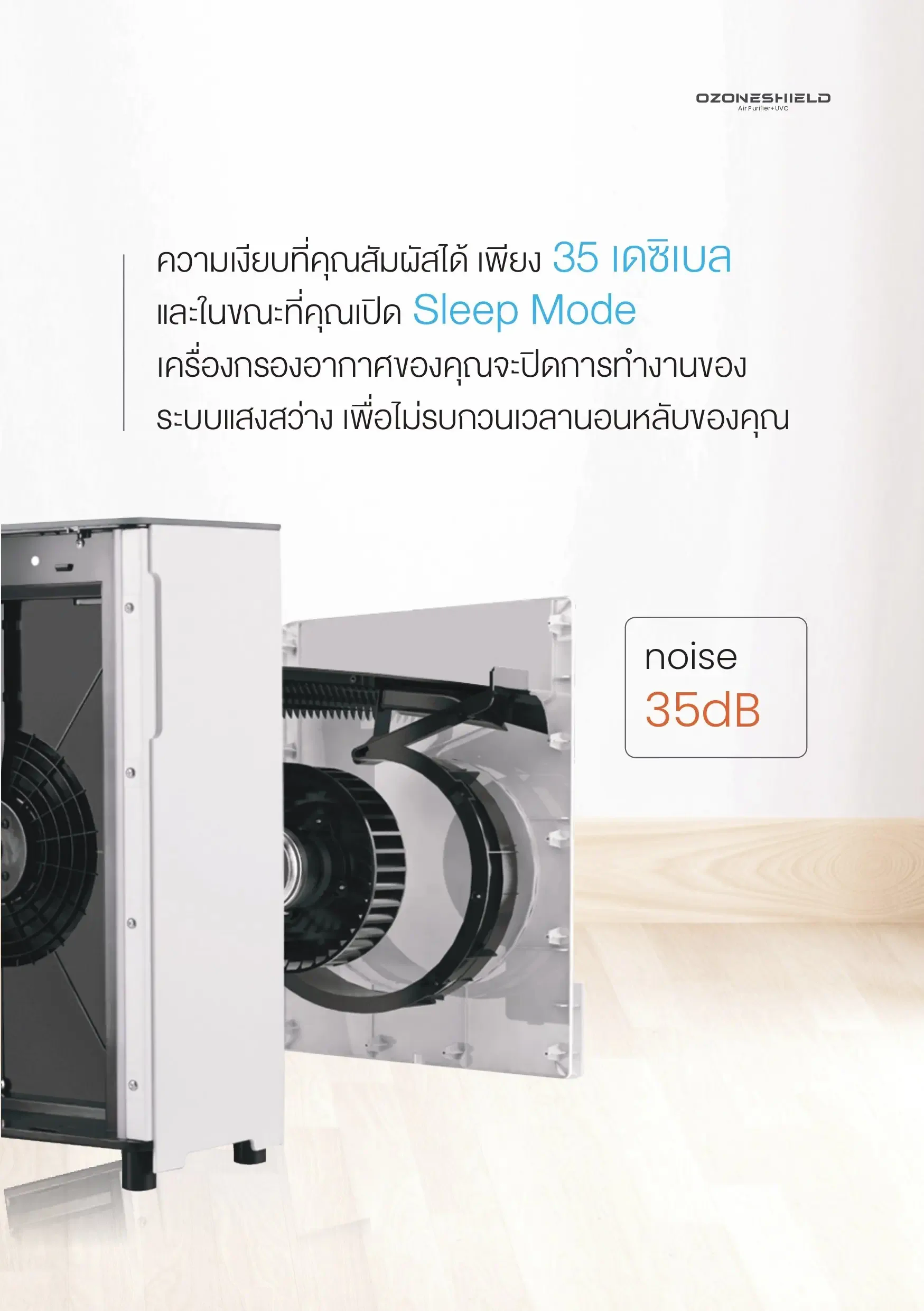 - The silence you can feel is only 55 decibels and while you turn on Sleep Mode, your air purifier will turn off the lighting system so as not to disturb your sleep time.