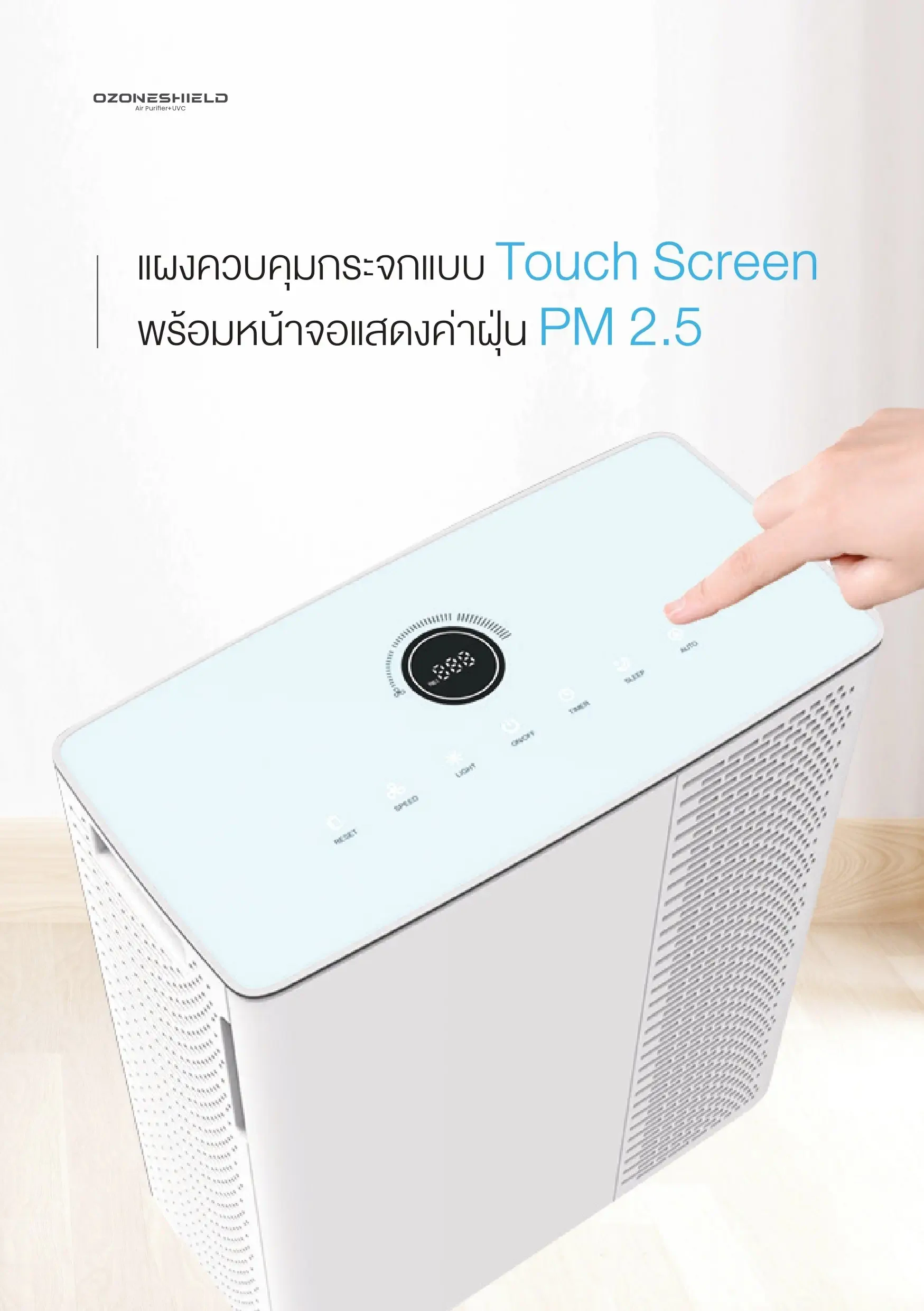- Touch Screen glass control panel with screen showing PM 2.5 dust values.