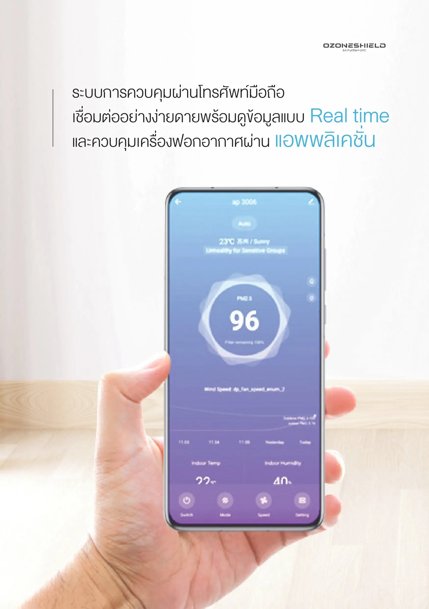- Control system via mobile phone connects easily and can view real time data and control the air purifier through the application.