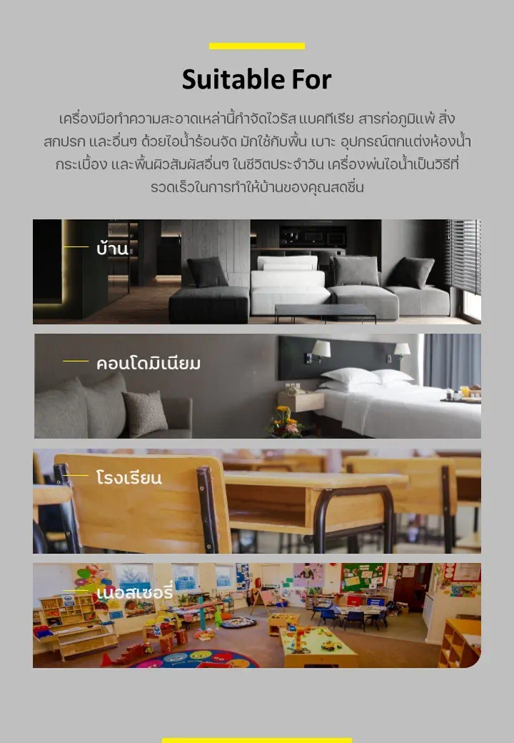 คือเครื่องมือที่มอบความมั่นใจในการทำความสะอาดพื้นที่ของคุณ ไม่ว่าจะเป็นการกำจัดตัวเรือดในบ้านหรือการใช้งานในเชิงพาณิชย์อย่างโรงแรมและรีสอร์ท — เรารับรองว่าคุณจะได้พื้นที่ที่สะอาด ปลอดภัย และห่างไกลจากเชื้อโรค ด้วยเทคโนโลยี ฆ่าเชื้อไอน้ำ ที่ช่วยยับยั้งแบคทีเรียและไวรัสได้อย่างมีประสิทธิภาพ รวมถึงการใช้ เครื่องพ่นไอน้ำทำความสะอาด ที่สามารถเข้าถึงทุกซอกมุม จัดการคราบฝังลึกและเชื้อโรคได้โดยไม่ต้องพึ่งสารเคมีรุนแรง