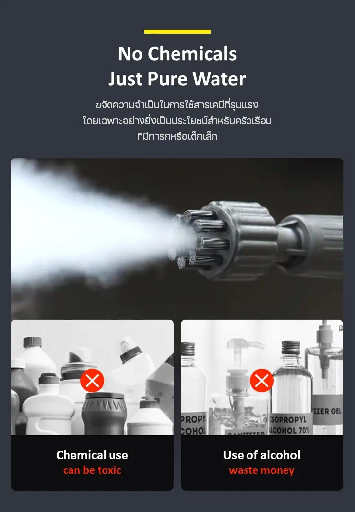 ไม่มีสารเคมี เพราะใช้น้ำบริสุทธิ์ในการฆ่าเชื้อ