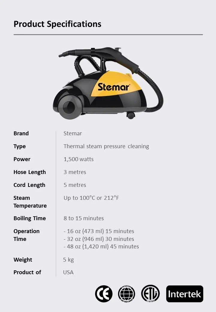 เครื่องกำจัดตัวเรือด STEMAR BEDBUG KILLER เป็น เครื่องสตรีมไอน้ำ ที่มีพลังสูงที่ออกแบบมาเพื่อการกำจัดตัวเรือด ไรฝุ่น และเชื้อจุลินทรีย์อย่างมีประสิทธิภาพ ด้วยการใช้ไอน้ำร้อนอุณหภูมิ 212 °F (100 °C) โดยไม่พึ่งสารเคมี ปลอดภัยต่อคนและสัตว์เลี้ยง ใช้งานง่าย น้ำหนักเบา เหมาะสำหรับบ้าน โรงแรม และพื้นที่ที่ต้องการความสะอาดสูง มั่นใจในคุณภาพและความปลอดภัยด้วยผลิตภัณฑ์จากสหรัฐอเมริกา