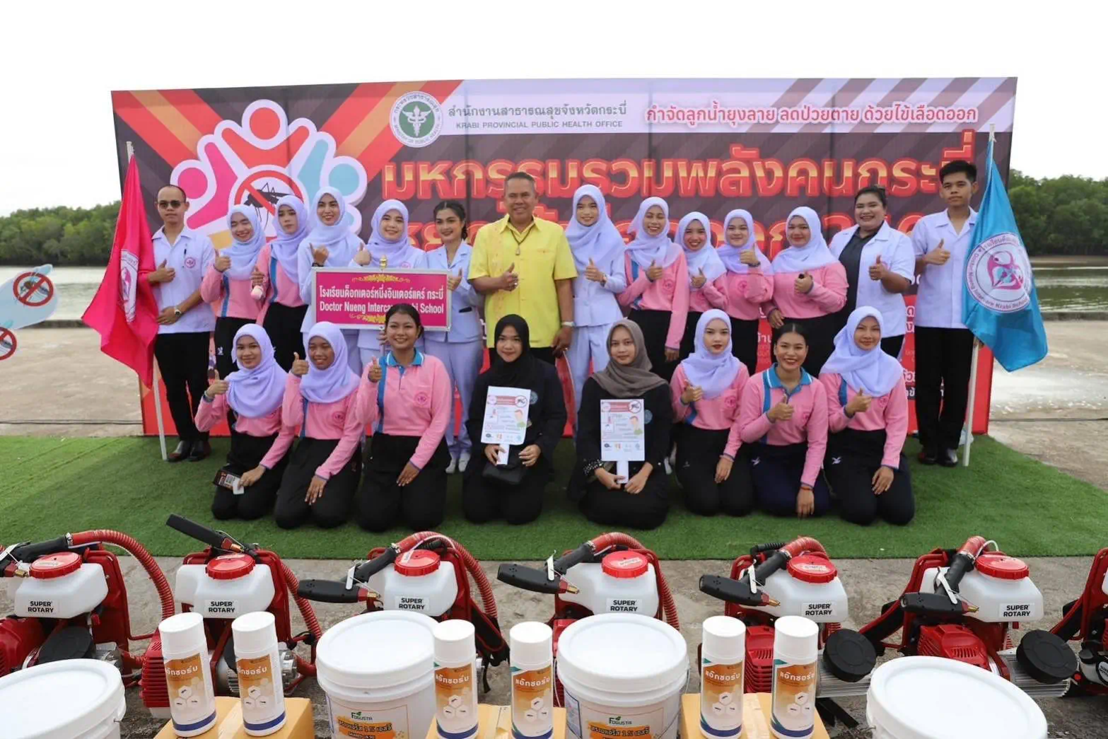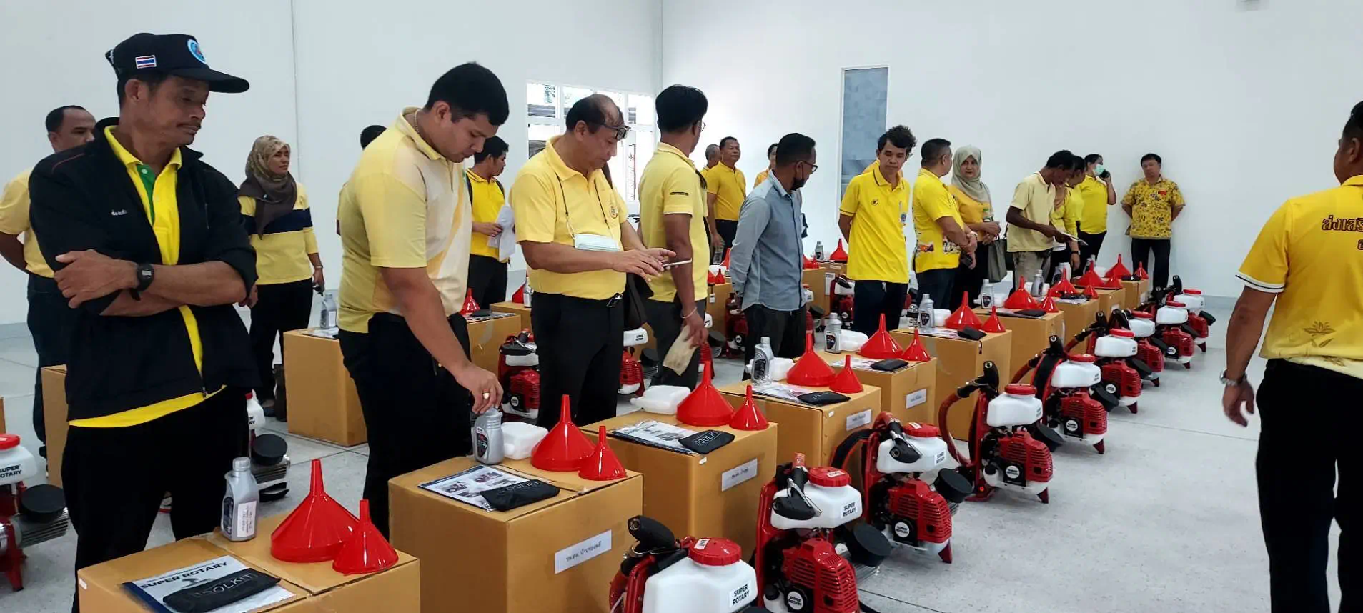 ภาพบรรยากาศหน้างานส่งมอบ เครื่องพ่นละอองฝอยสะพายหลัง ULV SUPER ROTARY ให้กับหน่วยงานราชการ โดยทีมงานผู้เชี่ยวชาญได้ทำการแนะนำวิธีการใช้งานและการดูแลรักษาเครื่องอย่างถูกต้อง เพื่อให้สามารถนำไปใช้งานจริงได้อย่างเต็มประสิทธิภาพ ทั้งในการกำจัดแมลงพาหะและการพ่นฆ่าเชื้อในพื้นที่สาธารณะ