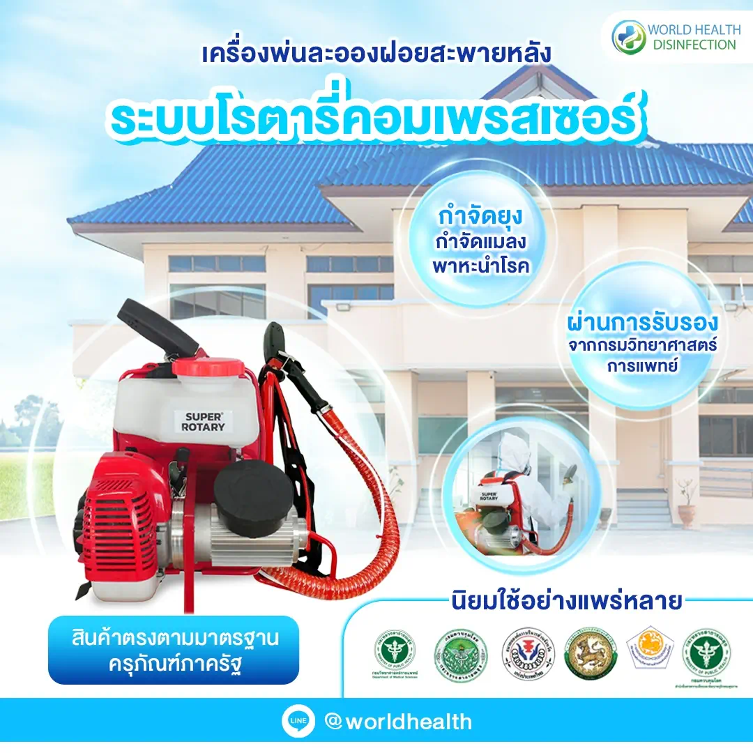 ULV SUPER ROTARY คือ เครื่องพ่นละอองฝอยแบบสะพายหลัง ที่ออกแบบมาเพื่อการใช้งานที่สะดวกและมีประสิทธิภาพสูง เหมาะสำหรับการพ่นสารเคมีกำจัดแมลงและเชื้อโรคในพื้นที่ต่าง ๆ ไม่ว่าจะเป็นบ้านเรือน โรงเรียน โรงแรม หรือพื้นที่เกษตรกรรม ขนาดกะทัดรัด พกพาง่าย พ่นละอองละเอียด กระจายได้ทั่วถึง ทนทาน เหมาะกับการใช้งานต่อเนื่องในภาคสนาม เหมาะสำหรับการฆ่าเชื้อและควบคุมแมลงอย่างมีประสิทธิภาพ สำหรับผู้ที่กำลังมองหา เครื่องพ่นโรตารี่ ที่สามารถใช้งานได้ทั้งในงานสาธารณสุขและการเกษตร ULV SUPER ROTARY ถือเป็นตัวเลือกที่คุ้มค่า ด้วยความสามารถในการพ่นละอองละเอียด ครอบคลุมพื้นที่กว้าง และช่วยประหยัดเวลาในการปฏิบัติงานได้อย่างดีเยี่ยม