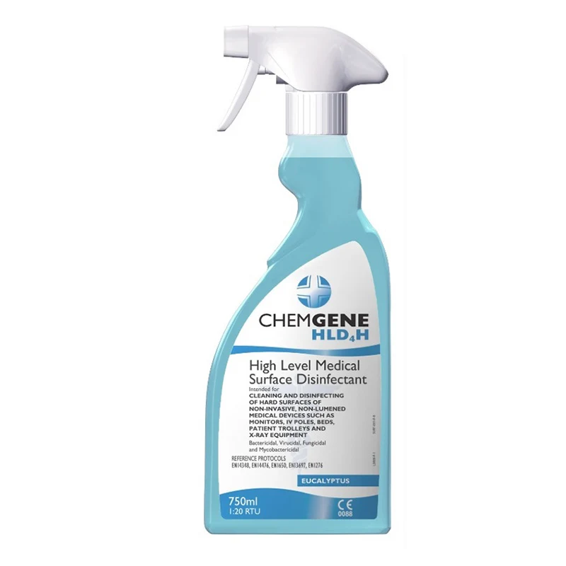 CHEMGENE HLD4H คือ น้ำยาฆ่าเชื้อชนิดสเปรย์ จากประเทศอังกฤษ ใช้ในห้องปฏิบัติการของ NHS England และผ่านการทดสอบโดย มหาวิทยาลัยมหิดล สามารถฆ่าเชื้อไวรัส แบคทีเรีย และเชื้อราได้ภายใน 1 นาที พร้อมคุณสมบัติการเคลือบพื้นผิว ป้องกันการปนเปื้อนได้นานถึง 14 วัน